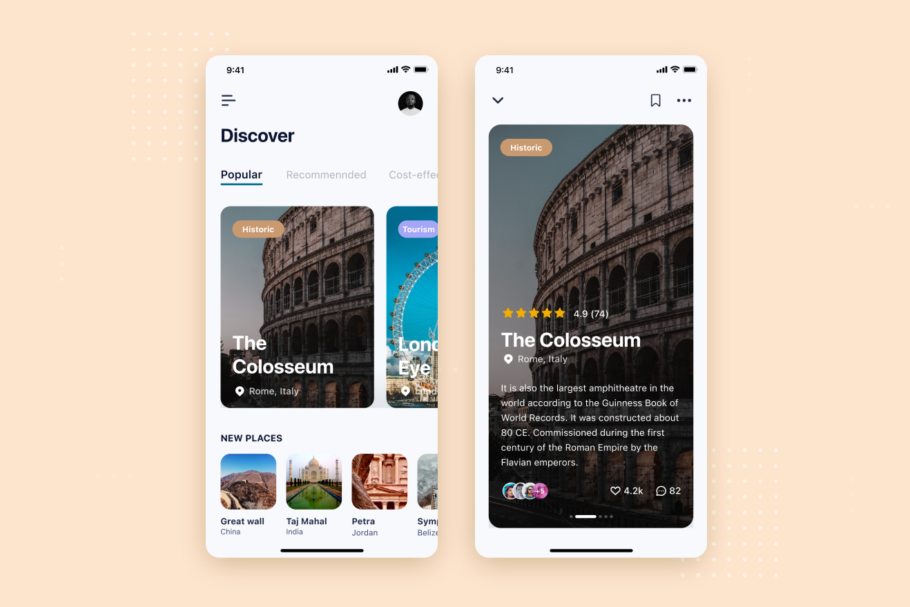 Snapshots of user interface design I have done in my free time to practice new Figma new trends and features.